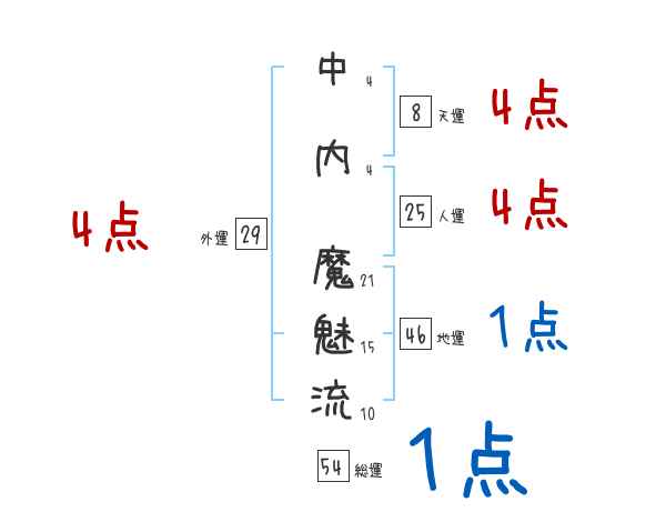 家系が持つ宿命的な運勢を表します。祖先から受け継いだ苗字ですので自分の力が及びません。家柄を象徴します。