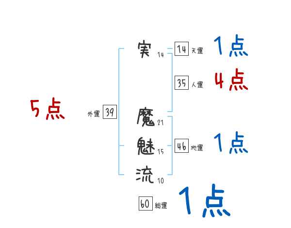 実魔魅流さんの画数の鑑定結果