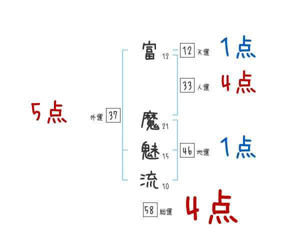 富魔魅流さんの画数の鑑定結果