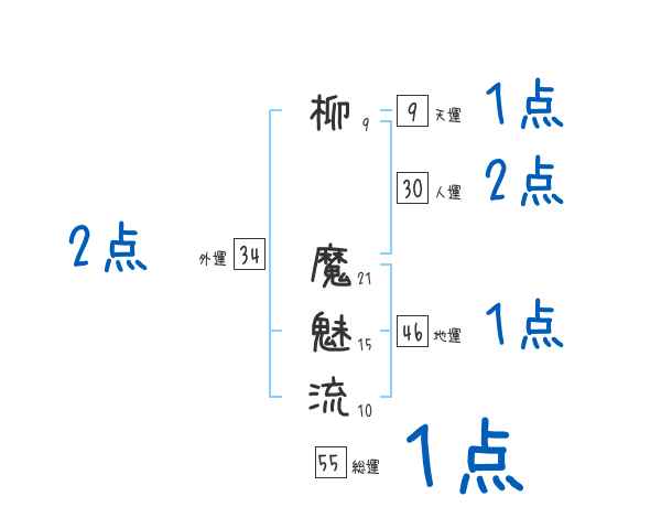 柳魔魅流さんの画数の鑑定結果