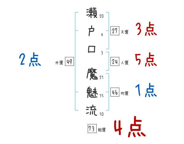 瀬戸口魔魅流さんの画数の鑑定結果