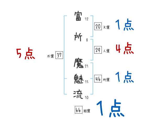 家系が持つ宿命的な運勢を表します。祖先から受け継いだ苗字ですので自分の力が及びません。家柄を象徴します。