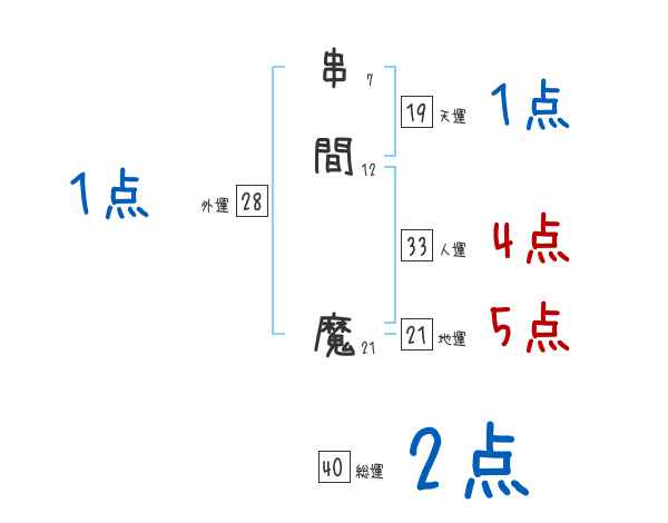 串間魔さんの画数の鑑定結果