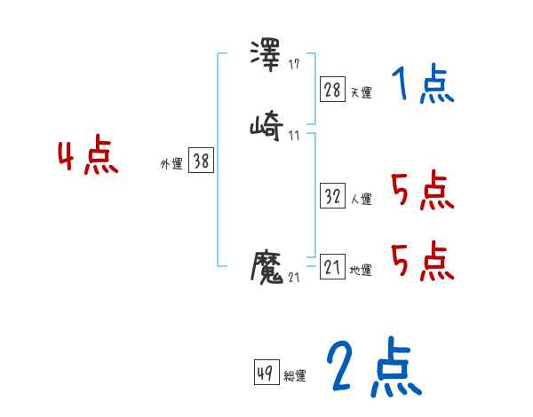 澤崎魔さんの画数の鑑定結果