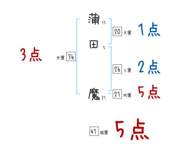 外運![]() | 蒲田魔さんの外運は36画の3つ星!先見性が豊かです。多少神経質で苦労することも。 生活面を象徴する運勢です。外部から受ける影響力を表し、結婚運、家庭運や職場、環境への順応性を表します。 |