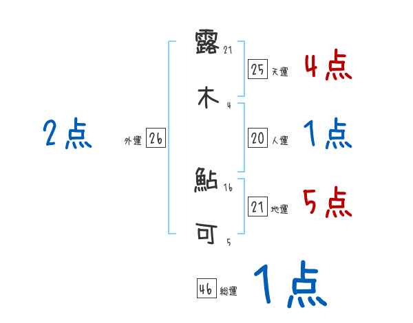 外運![]() | 露木鮎可さんの外運は26画の2つ星!波瀾万丈かも。信頼できる人を大事にしましょう。 生活面を象徴する運勢です。外部から受ける影響力を表し、結婚運、家庭運や職場、環境への順応性を表します。 |