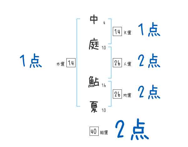 中庭鮎夏さんの画数の鑑定結果