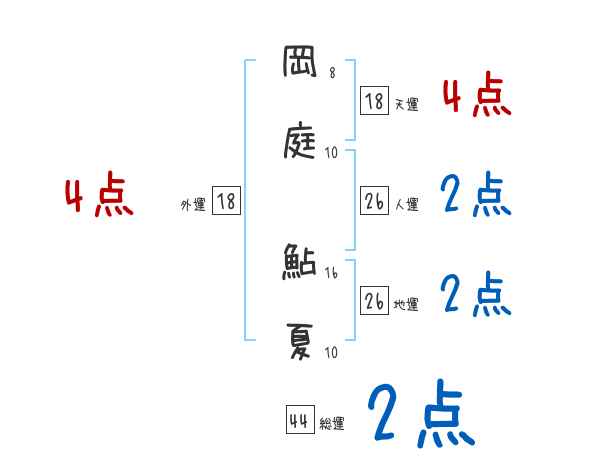 岡庭鮎夏さんの画数の鑑定結果