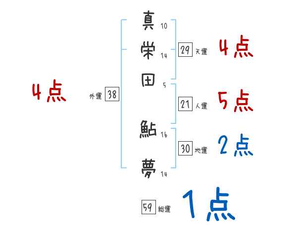 真栄田鮎夢さんの画数の鑑定結果