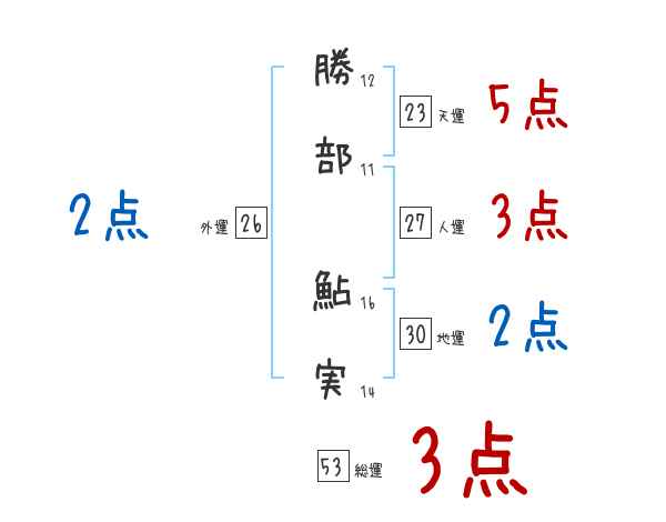 天運![]() | 勝部鮎実さんの天運は23画の5つ星!想像力に優れ活力がある。一代で成功し名誉を手に入れる。 家系が持つ宿命的な運勢を表します。祖先から受け継いだ苗字ですので自分の力が及びません。家柄を象徴します。 |