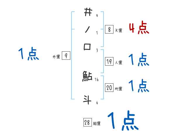 総運![]() | 井ノ口鮎斗さんの総運は28画の1つ星!家庭環境に注意。スポーツで活躍できる能力があるかも。 あなたの人生を表す1番重要な運勢です。生涯を通じて影響する総合運となり、主に50歳以降の晩年期に影響を及ぼします。 |