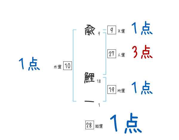 兪鯉一さんの画数の鑑定結果