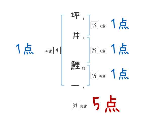 地運![]() | 坪井鯉一さんの地運は19画の1つ星!優れた才能を持ちますが、協調性が足りないことも。周りの人と協力する事を意識しましょう。 個性を表す基礎的な運勢です。性格形成や対人関係、行動力など家庭環境に影響されます。主に誕生してから20歳くらいまでの若年期の運勢を表します。 |