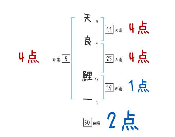 天運![]() | 天良鯉一さんの天運は11画の4つ星!着実に富や地位を得る幸運な人生。 家系が持つ宿命的な運勢を表します。祖先から受け継いだ苗字ですので自分の力が及びません。家柄を象徴します。 |
