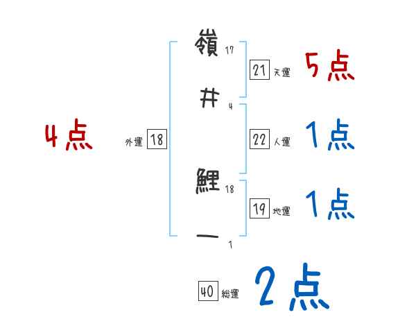 嶺井鯉一さんの画数の鑑定結果