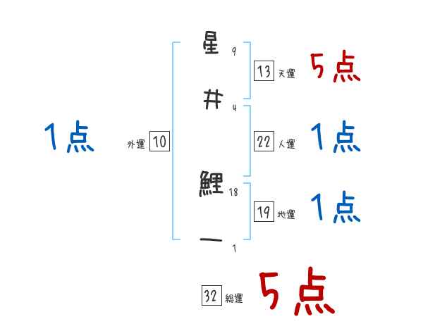 星井鯉一さんの画数の鑑定結果