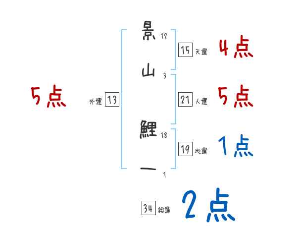 景山鯉一さんの画数の鑑定結果