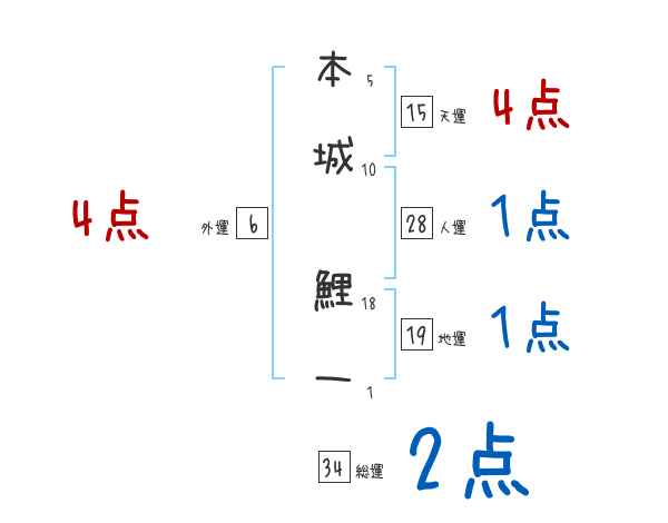 本城鯉一さんの画数の鑑定結果