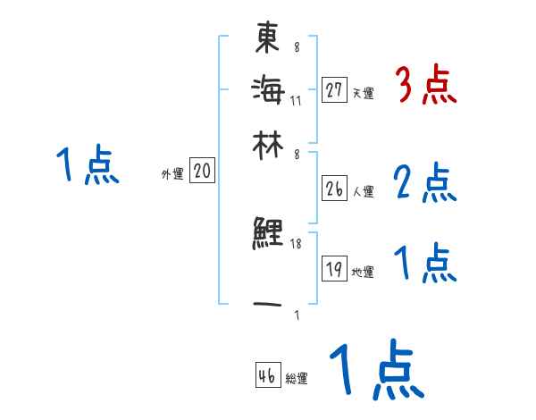 天運![]() | 東海林鯉一さんの天運は27画の3つ星!頭脳明晰だが強情で摩擦が多い傾向。孤立に注意。 家系が持つ宿命的な運勢を表します。祖先から受け継いだ苗字ですので自分の力が及びません。家柄を象徴します。 |