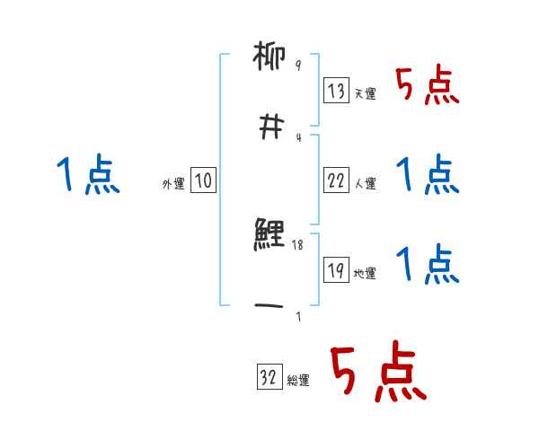 柳井鯉一さんの画数の鑑定結果