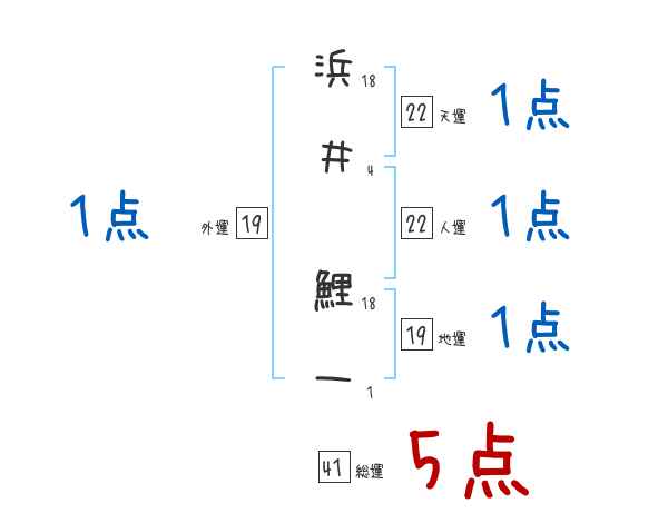 外運![]() | 浜井鯉一さんの外運は19画の1つ星!優れた才能を持ちますが、協調性が足りないことも。周りの人と協力する事を意識しましょう。 生活面を象徴する運勢です。外部から受ける影響力を表し、結婚運、家庭運や職場、環境への順応性を表します。 |