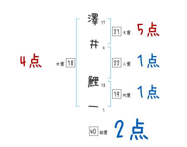 澤井鯉一さんの画数の鑑定結果