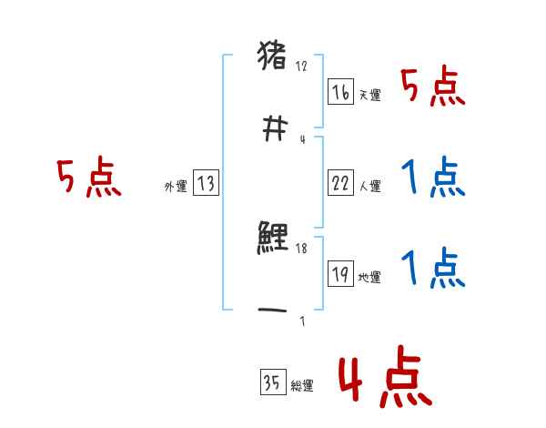 猪井鯉一さんの画数の鑑定結果