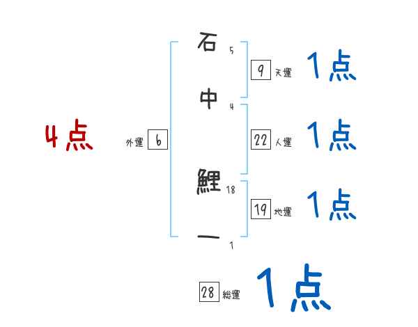 総運![]() | 石中鯉一さんの総運は28画の1つ星!家庭環境に注意。スポーツで活躍できる能力があるかも。 あなたの人生を表す1番重要な運勢です。生涯を通じて影響する総合運となり、主に50歳以降の晩年期に影響を及ぼします。 |
