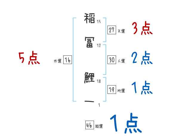 稲冨鯉一さんの画数の鑑定結果