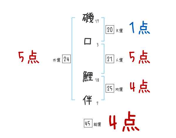 磯口鯉伴さんの画数の鑑定結果