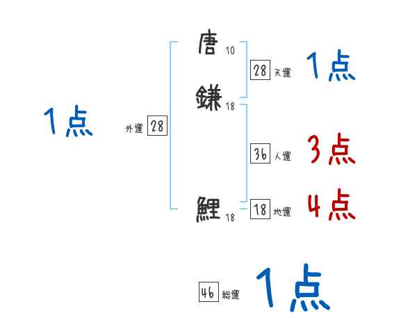 唐鎌鯉さんの画数の鑑定結果