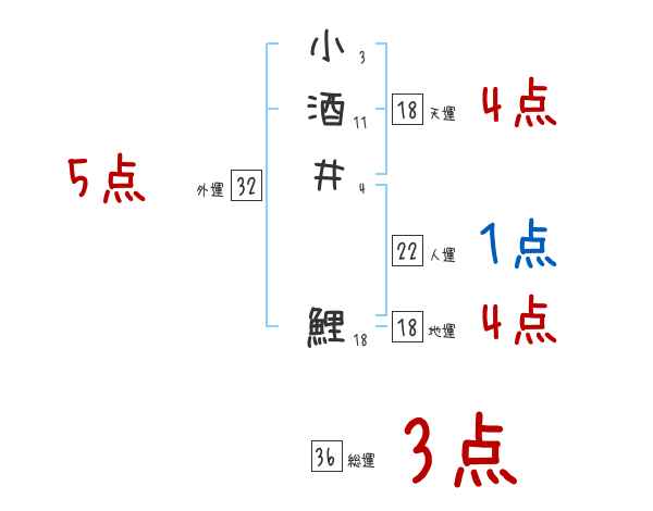 小酒井鯉さんの画数の鑑定結果