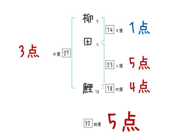 柳田鯉さんの画数の鑑定結果
