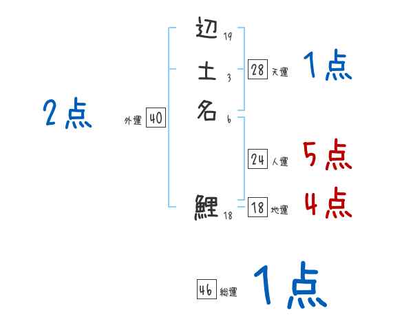 辺土名鯉さんの画数の鑑定結果