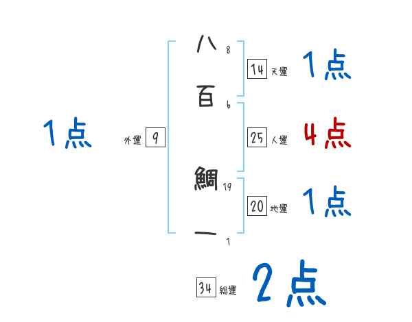地運![]() | 八百鯛一さんの地運は20画の1つ星!社交が苦手。人とは違った才能があり波乱万丈な人生かも。 個性を表す基礎的な運勢です。性格形成や対人関係、行動力など家庭環境に影響されます。主に誕生してから20歳くらいまでの若年期の運勢を表します。 |