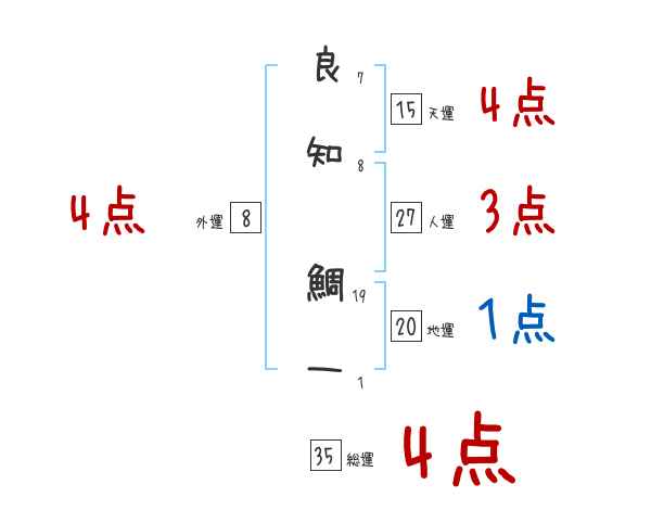 良知鯛一さんの画数の鑑定結果