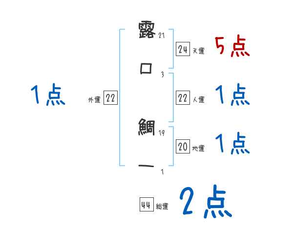 露口鯛一さんの画数の鑑定結果