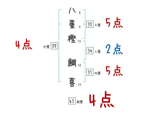 八重樫鯛喜さんの画数の鑑定結果