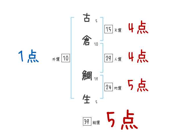 古倉鯛生さんの画数の鑑定結果