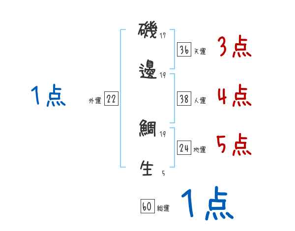 磯邊鯛生さんの画数の鑑定結果