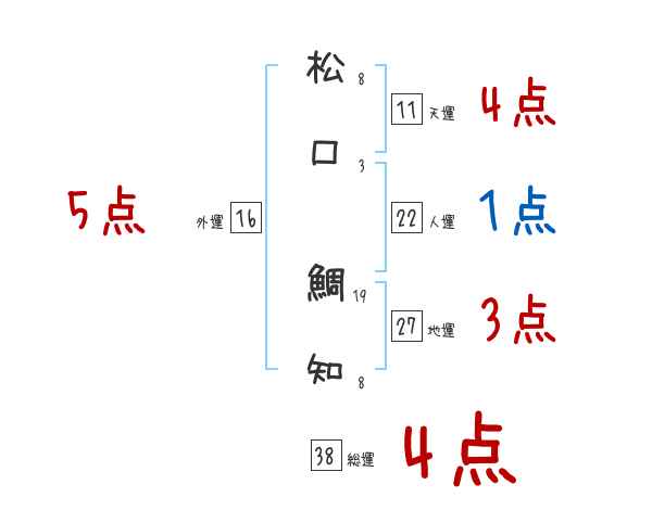 松口鯛知さんの画数の鑑定結果