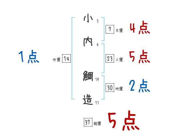 小内鯛造さんの画数の鑑定結果