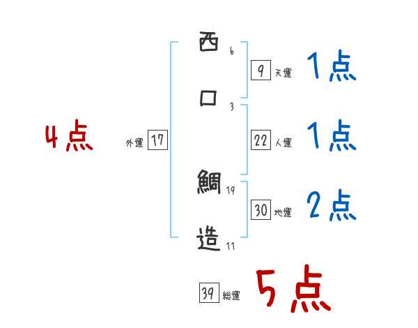 西口鯛造さんの画数の鑑定結果