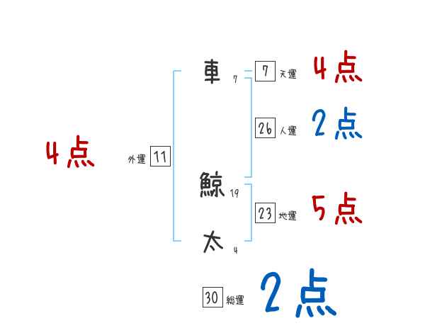 車鯨太さんの画数の鑑定結果