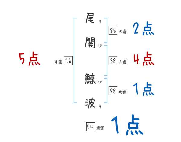 尾関鯨波さんの画数の鑑定結果
