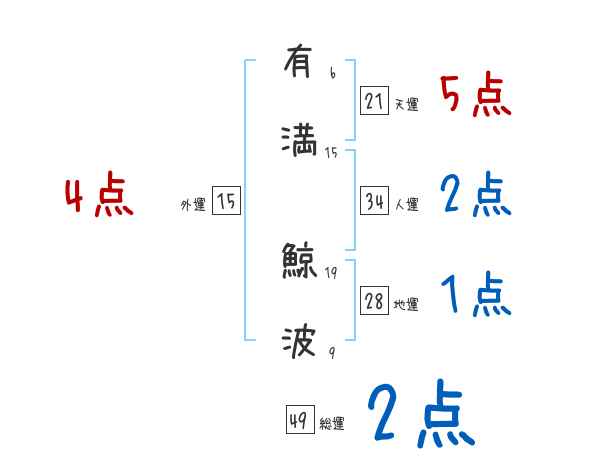 天運![]() | 有満鯨波さんの天運は21画の5つ星!統率力がある。独立し成功する。名誉を手に入れる。 家系が持つ宿命的な運勢を表します。祖先から受け継いだ苗字ですので自分の力が及びません。家柄を象徴します。 |