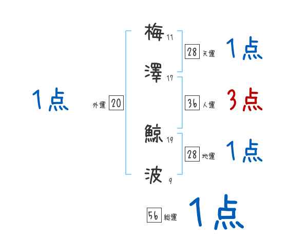 梅澤鯨波さんの画数の鑑定結果