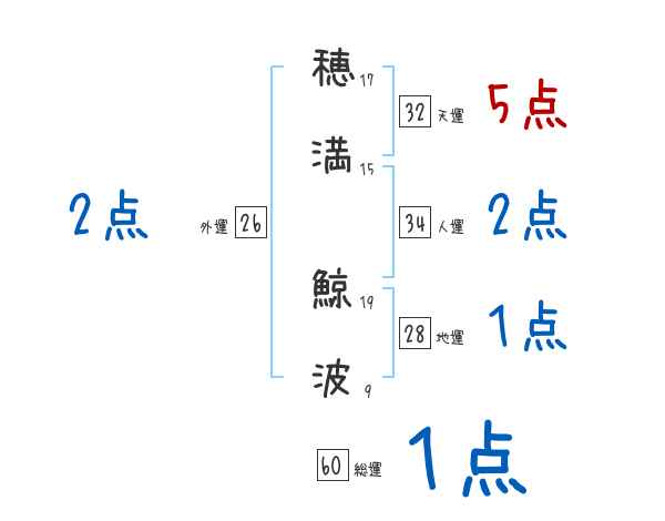 穂満鯨波さんの画数の鑑定結果