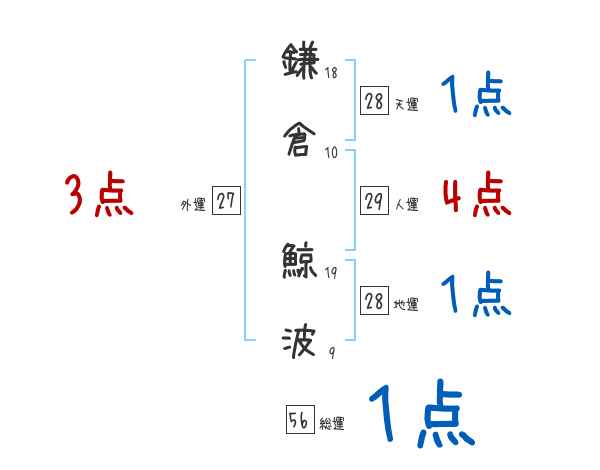 鎌倉鯨波さんの画数の鑑定結果