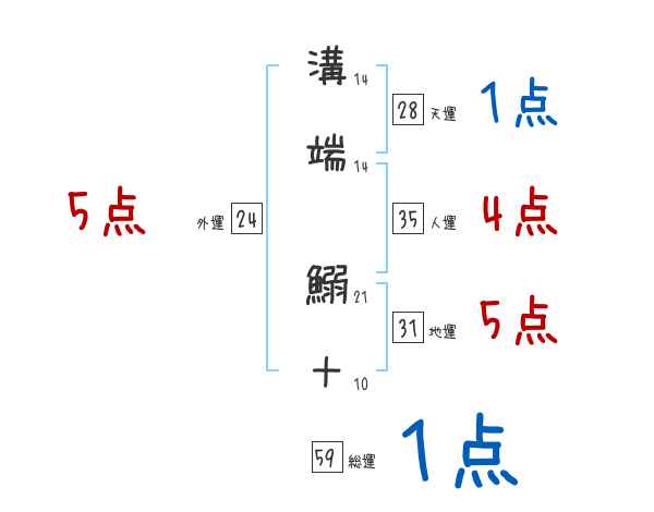 天運![]() | 溝端鰯十さんの天運は28画の1つ星!家庭環境に注意。スポーツで活躍できる能力があるかも。 家系が持つ宿命的な運勢を表します。祖先から受け継いだ苗字ですので自分の力が及びません。家柄を象徴します。 |